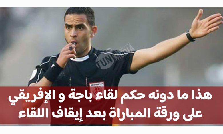هذا ما دونه يسري بوعلي حكم لقاء الأولمبي الباجي والنادي الإفريقي على ورقة المباراة بعد إيقاف اللقاء