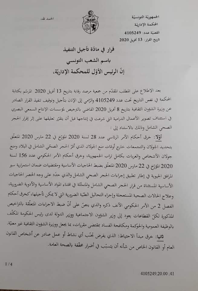 افريل 2020، قرار بتأجيل تصوير المسلسلات والأعمال الدرامية الرمضانية الذي كانت دعت له وزارة الثقافة في وقت سابق . و جاء هذا القرار في ضل تفشي فيروس كورونا و مع اقرار الحجر الصحي الشامل في البلاد .