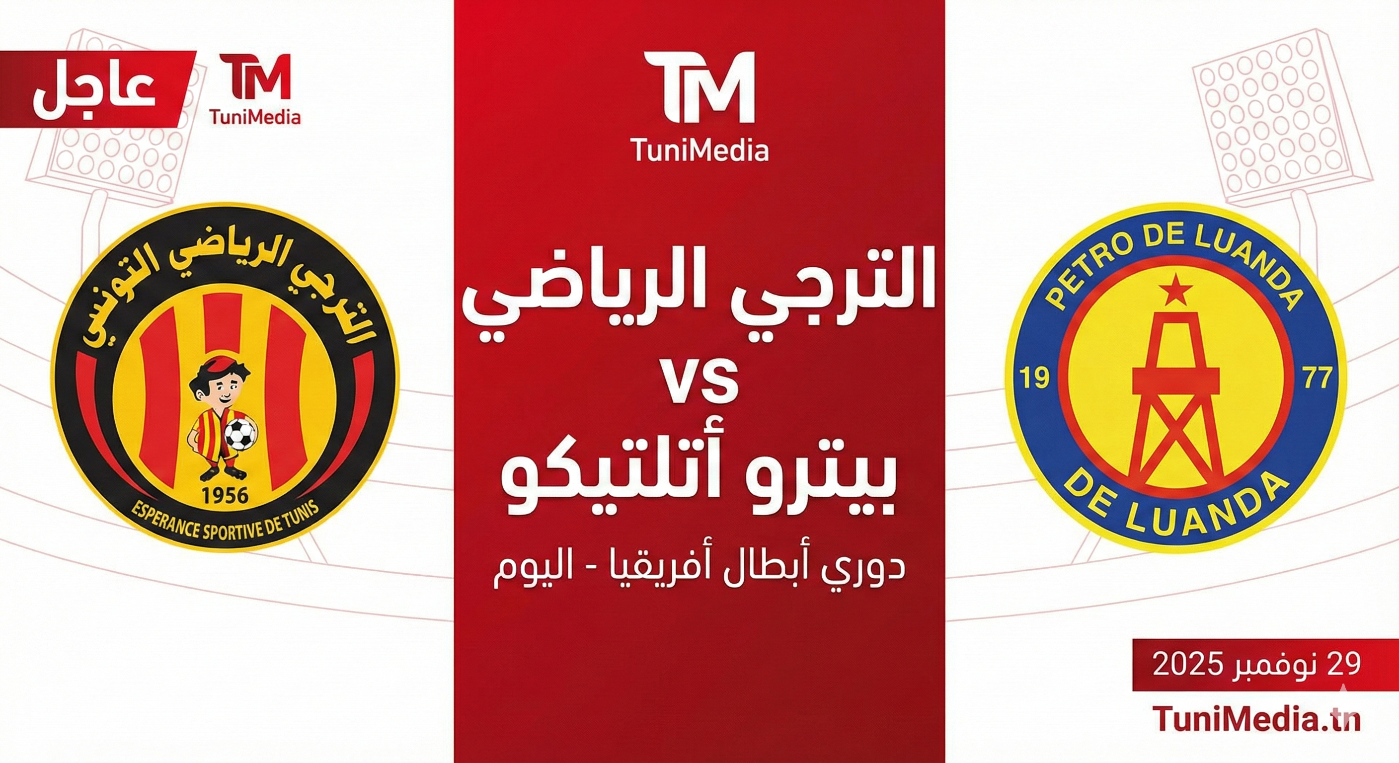 مباراة قوية ومفتوحة على كل الاحتمالات تنتظر الترجي الرياضي في أنغولا. المتابعون في تونس يمكنهم مشاهدة اللقاء مباشرة عبر beIN Sports HD 2 بداية من الساعة الخامسة مساءً.