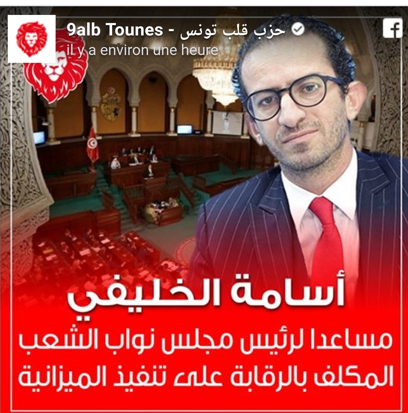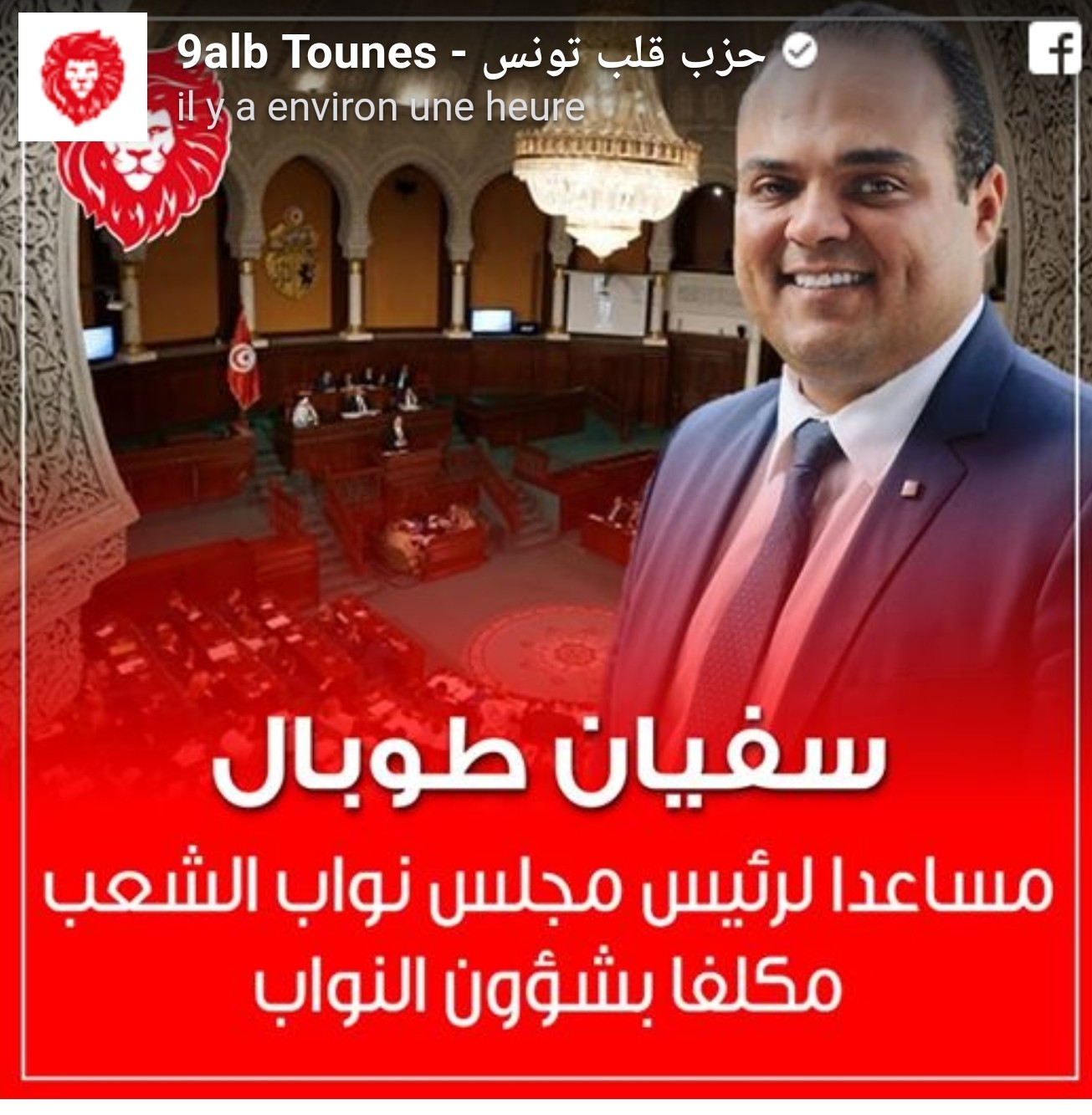 أعلن حزب قلب تونس عن تعيين كل من أسامة الخليفي مساعدا لرئيس مجلس نواب الشعب مكلفا بالرقابة على تنفيذ الميزانية و سفيان طوبال مساعدا لرئيس مجلس نواب الشعب مكلفا بشؤون النواب.