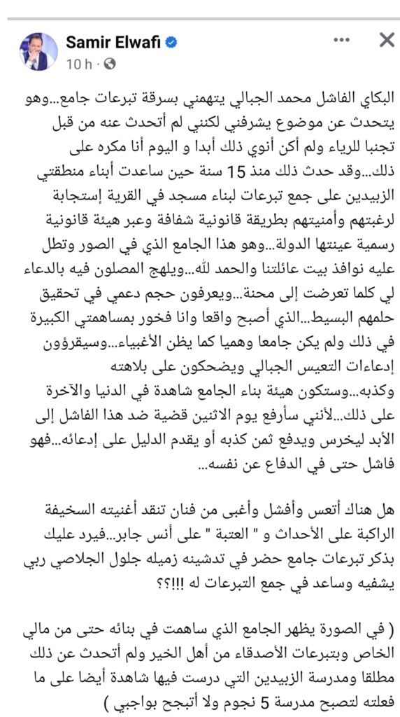 اتهمه بسرقة أموال لبناء جامع: سمير الوافي يفتح النار على الفنان محمد الجبالي ويرد..