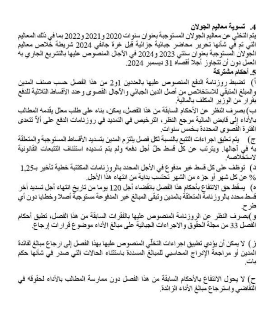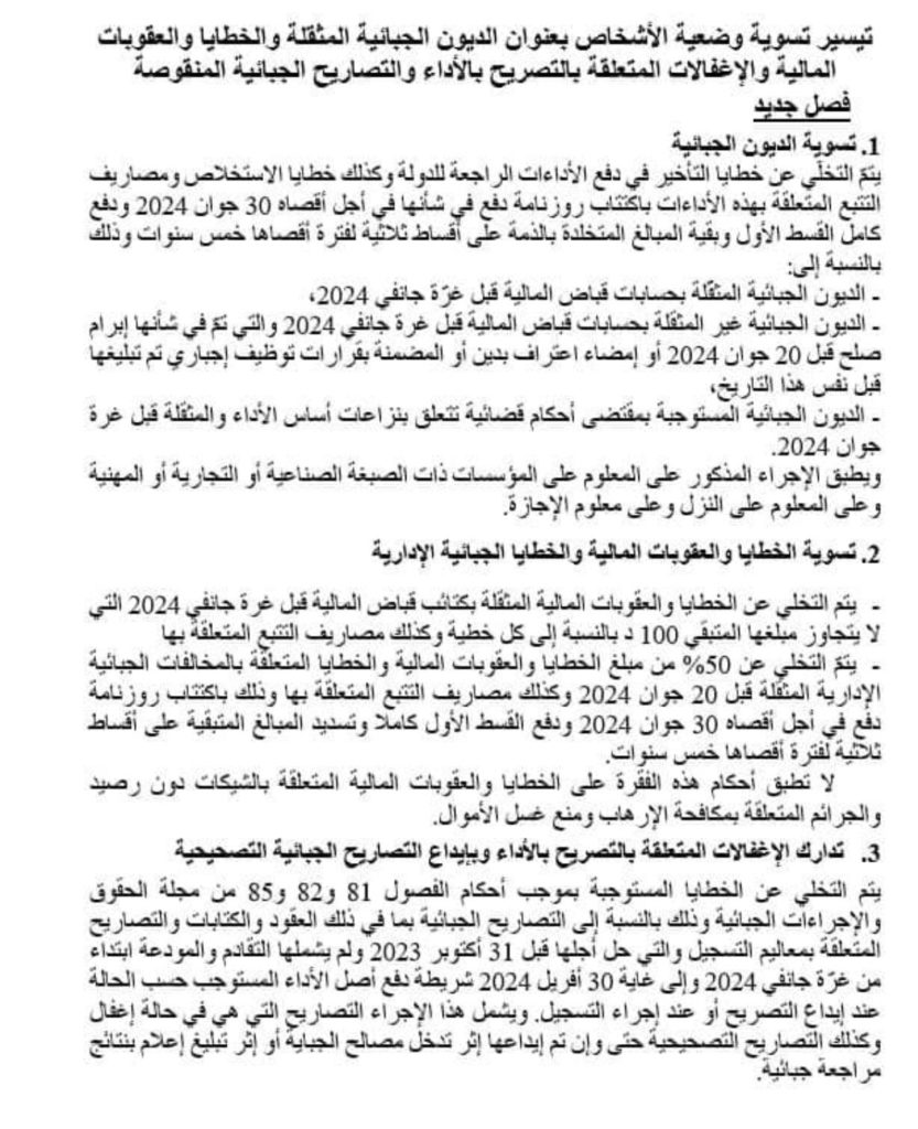و جاءت تفاصيل العفو الجبائي كالتالي :