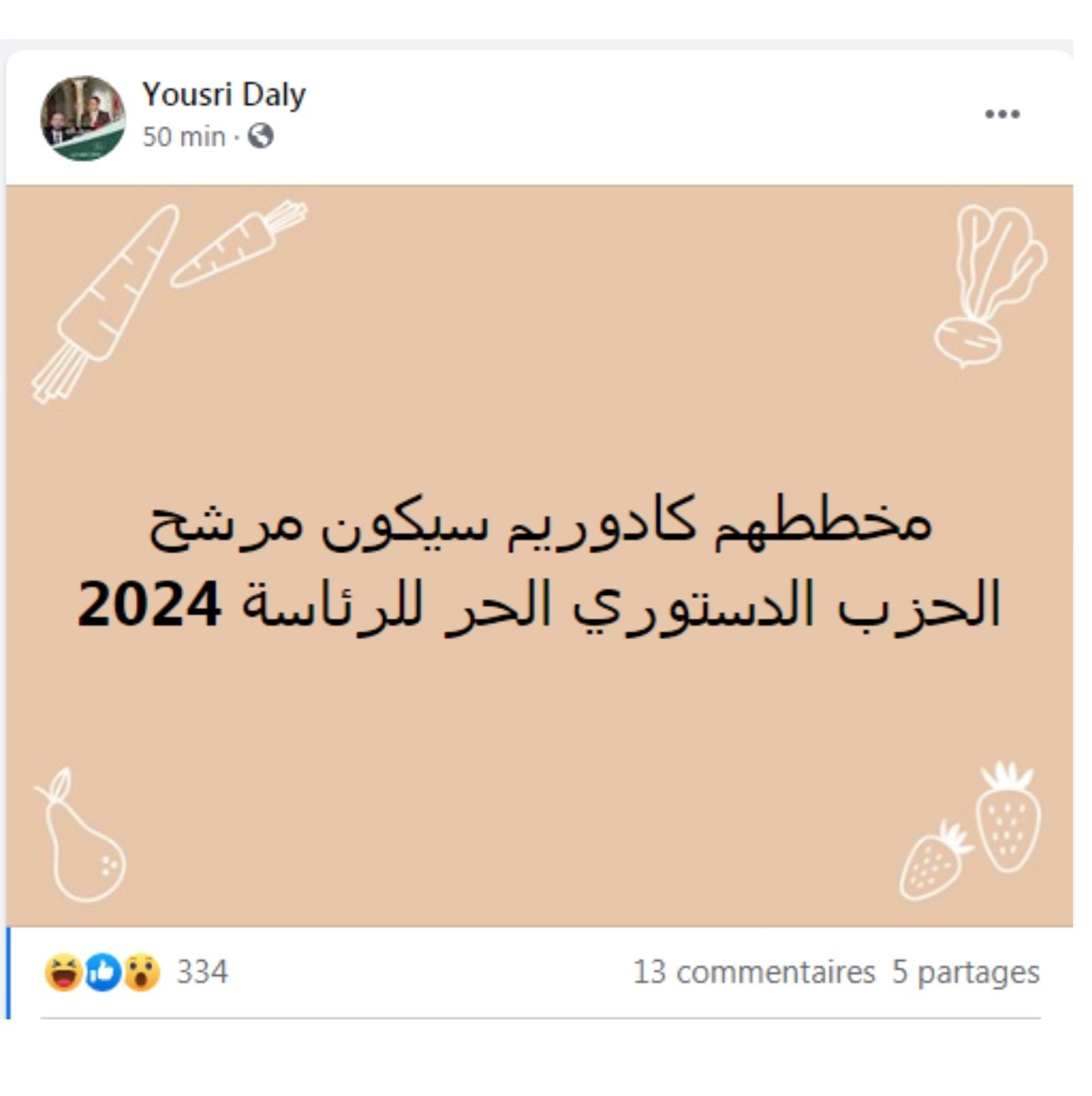 يسري الدالي: “مخطّطهم أن يكون كادوريم مرشّح الدستوري الحرّ لرئاسة 2024”