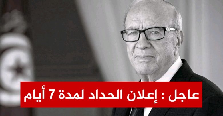 قرر رئيس الحكومة السيد يوسف الشاهد اليوم الخميس إعلان الحداد الوطني لمدة سبعة أيام وتنكيس الأعلام بالمؤسسات الرسمية وذلك على إثر وفاة سيادة رئيس الجمهورية التونسية المغفور له بإذن الله تعالى محمد الباجي قائد السبسي.