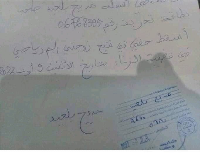 إني الموقع أسفله مديح بلعيد.. أسقط حقي في تتبع زوجتي ريم الرياحي في قضية الزنا