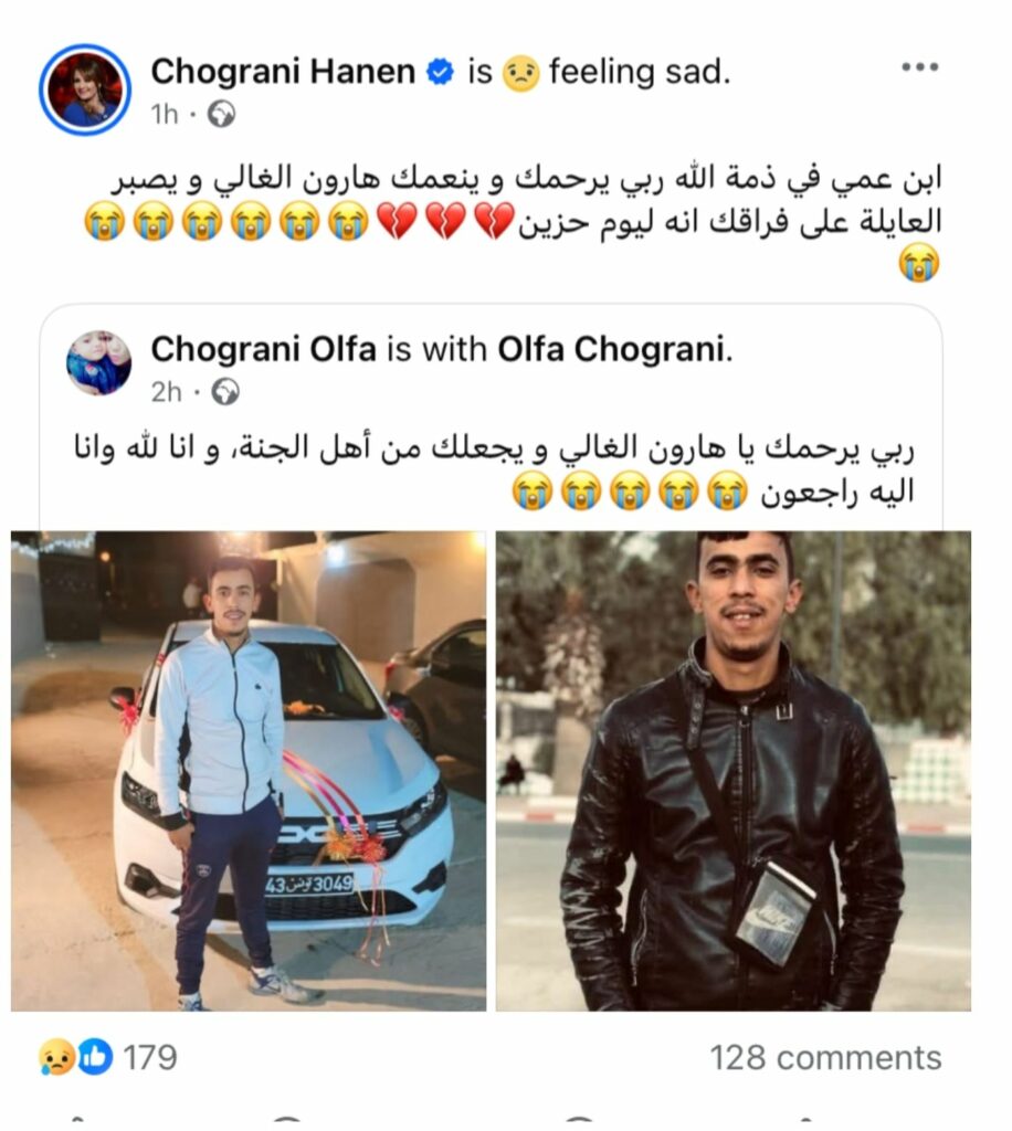 *”ابن عمي في ذمة الله، ربي يرحمك وينعمك يا هارون الغالي، ويصبر العائلة على فراقك. إنه ليوم حزين.”*