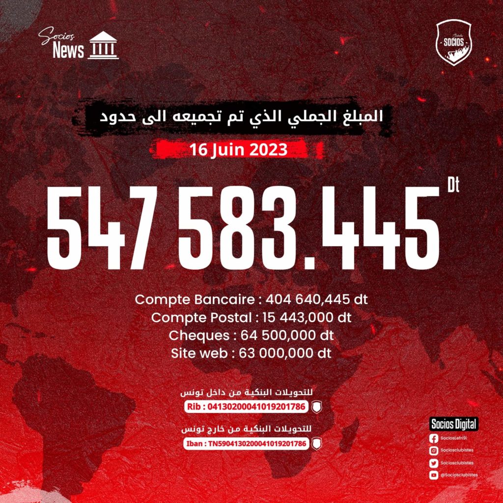 نشر اليوم الجمعة 16 جوان 2023 موقع سوسيوس النادي الافريقي الرقم الذي دخل حسابات الهيكل الجديد