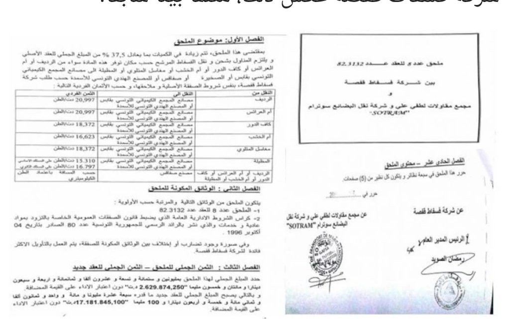 رأنا يقظ 23 مليارا على متن شاحنات النائب لطفي علي وشركائه!على خلاف ما يدّعيه المستثمر وعضو مجلس نواب الشعب لطفي علي، غنم مجمع المقاولات الذي يشارك فيه النائب عبر شركة يمتلك ربع حصصها 17 مليون دينار من عقود نقل الفسفاط عبر الشاحنات إبان 2014، من مجموع 23 مليون دينار حصل عليها بين 2012 و2017، وذلك وفق وثائق حصلت عليها منظمة أنا يقظ من شركة فسفاط قفصة في السادس عشر من مارس والرابع والعشرين من أفريل المنقضيين.وفق نفس الوثائق الواردة على أنا يقظ، ظفر النائب رفقة شركائه، عبر مجمع مقاولات لطفي علي وشركة نقل البضائع SOTRAM بعقدين لشحن الفسفاط ونقله من قفصة الى المجمع الكيمياوي التونسي بقابس أو بصفاقس أو لمصنع الشركة التونسية الهندية للأسمدة.تفاصيل عقد 2014..في 28 جانفي 2014 تم توقيع العقد عدد 82.3132 بين شركة فسفاط قفصة من جهة ومن جهة أخرى مجمع مقاولات لطفي علي وشركة سوترام لنقل الفسفاط وشحنه مقابل مبلغ مالي قدّر ب 7 مليون دينار ليرتفع المبلغ في 2017 لــ17 مليون دينار.التزم مجمع المقاولات بموجب هذا العقد بشحن الفسفاط ونقله من الرديف وأم العرايس الى مصانع المجمع الكيميائي التونسي بقابس أو الى المصنع التونسي الهندي للأسمدة بالصخيرة TIFERT. ونصّ كراس شروط الصفقة على نقل 167 ألف طن من الرديف و167 ألف طن من أم العرائس في مدة زمنية لا تتجاوز 200 يوما، وبثمن للطن الواحد بلغ 20،997 دينار إذا تم استعمال مسالك أساسية متراوحة بين 230 كلم و240 كلم، بينما يمكن لقيمة الصفقة أن ترتفع بنسبة 140 % لتصبح 9.8 مليون دينار، أي بثمن للطن الواحد يصل الى 36 دينارا، بينما لم يتجاوز ثمن الطن لنقل الفسفاط على متن القطارات الخمسة دينارات، وفق ما أكده حسان الميعادي مدير الإعلام والاتصال بالشركة الوطنية للسكك الحديدية في تصريح لأنا يقظ.كانت هذه الصفقة مشفوعة بــثمان ملاحق، لعلّ أهمها الملحق الأخير (الملحق عدد 8) الممضى عليه بتاريخ 27 فيفري 2017 والمتعلّق بالزيادة في كميات الفوسفاط المنقول بــ37.5 لترتفع بذلك قيمة الصفقة إلى 17 مليون دينار.الوثائق تدحض ادعاءات النائب..اللافت في العقد عدد 82.3132 الذي شارك فيه النائب ضمن مجمع مقاولات لطفي علي وشركة نقل البضائع SOTRAM انه يدحض مختلف ادعاءات عضو مجلس نواب الشعب.قال لطفي علي، في تصريح لإذاعة شمس أف أم بتاريخ 12 أكتوبر 2017:” من 2014 ما عندي حتى صفقة مع شركة فسفاط قفصة، وما عندي حتى كميون لنقل الفسفاط. وقبل 2014 كان لدي صفقات وأقصى صفقة بنسبة 25 بالمائة وهي صفقات عمومية تخضع لمقاييس معينة”، بينما تفيد مئات الوثائق التي حصلت عليها أنا يقظ من شركة فسفاط قفصة عكس ذلك، مثلما بينّا سابقا.