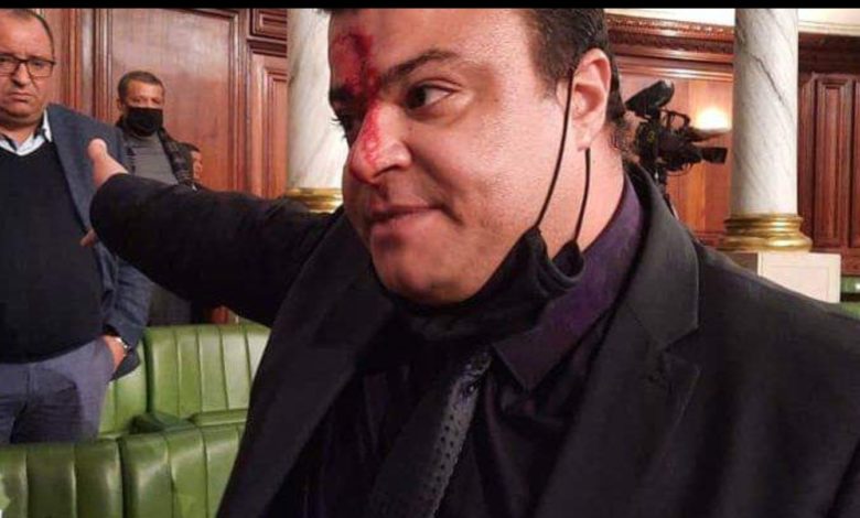 و قال أن الإصابة التي تلقاها على مستوى الرأس بقارورة من قبل نواب ائتلاف الكرامة الذين انهالوا عليه ضربا وفق تعبيره .