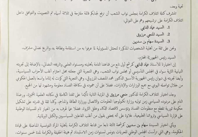 تضمّنت المراسلة الرسمية لترشيحات ائتلاف الكرامة لرئاسة الحكومة القادمة 3 أسماء كان ترتيبهم حسب التصويت الداخلي كالآتي: