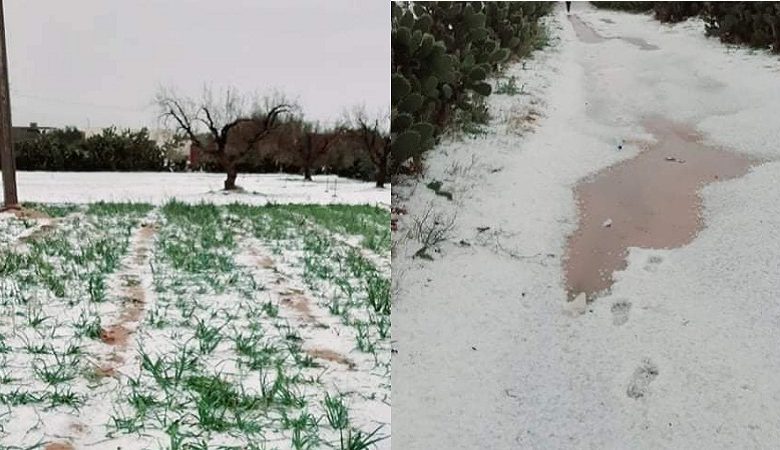 البَرَدُ يغطي الارض بالبياض في عدد من مناطق سيدي بوزيد