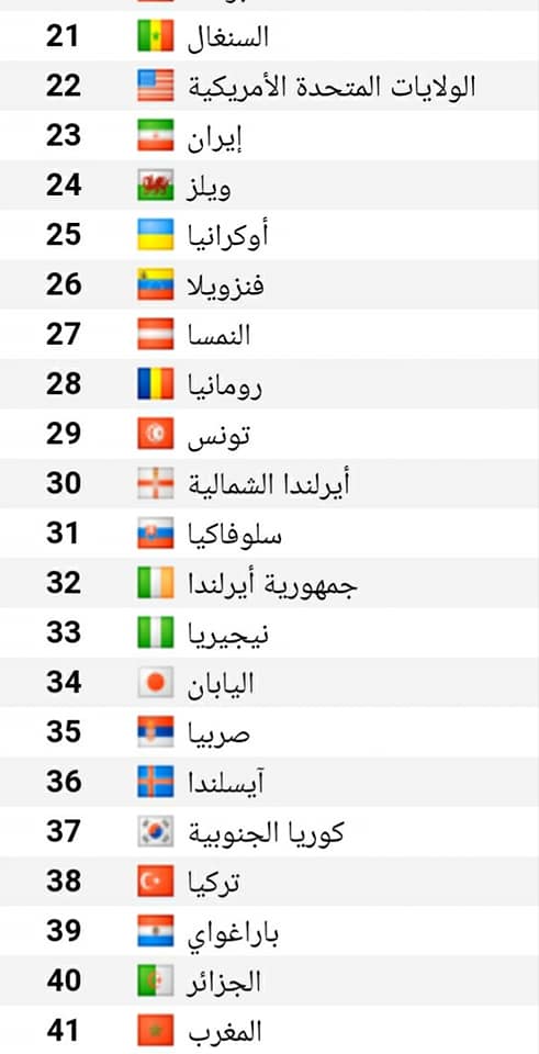 وبذلك يظل في المركز الثاني بالنسبة للمنتخبات الافريقية بعد منتخب السينغال يليه المنتخب النيجيري ، الجزائري ،المغربي ثم المصري