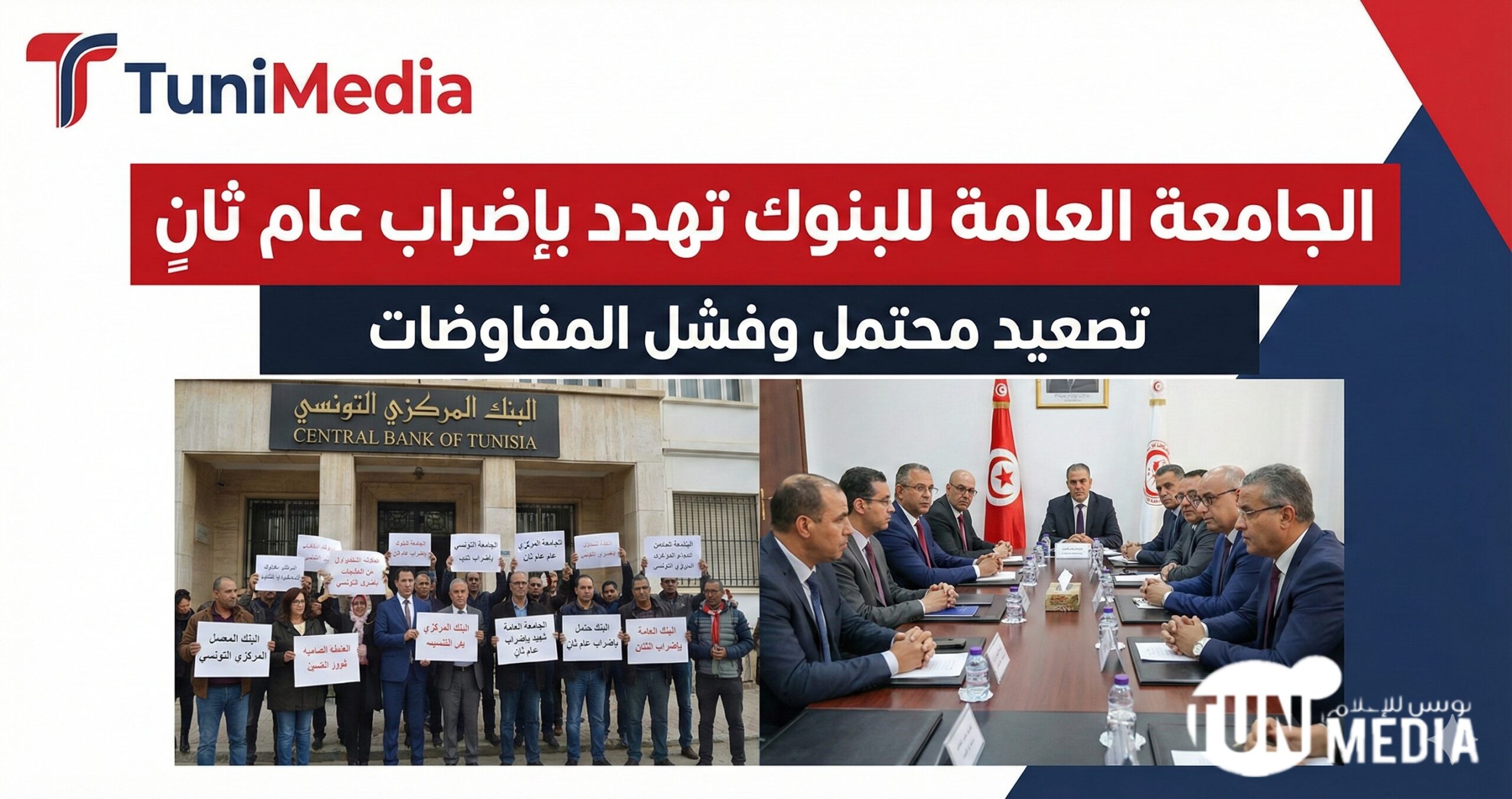 تونس – متابعة موقع تونيميديا: يتواصل الاحتقان داخل قطاع البنوك في تونس، بعد أن أصدرت الجامعة العامة للبنوك والمؤسسات المالية والتأمين بيانًا شديد اللهجة، لوّحت فيه بإمكانية المرور نحو إضراب عام ثانٍ ما لم يقع فتح مفاوضات جدية حول مطالب الأعوان.
