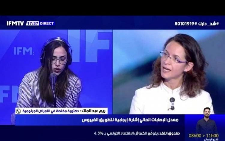الدكتورة ريم عبد الملك : ذروة الوباء في تونس ستكون بين 25 أفريل و 4 ماي و لايمكننا اليوم الحديث عن إحتواء الوضع