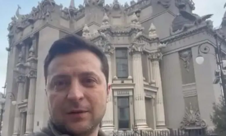 ودعا زيلينسكي إلى عدم الاستسلام والدفاع عن كييف، مشيرا إلى أنه باق في العاصمة الأوكرانية وأن الجيش لن يترك ساحة المعركة.