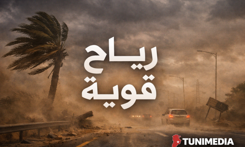 تشهد تونس منذ ظهر السبت 31 جانفي 2026 اضطرابًا جويًا قويًا: رياح تتراوح بين 60 و80 كلم/س وقد تبلغ 110 كلم/س في هبّات مؤقتة، وتصل ليلًا إلى 130 كلم/س بالمناطق الجبلية. كما تتواصل أمطار رعدية بالشمال ومحليًا الوسط إلى صباح الأحد، مع كميات قد تبلغ 90 مم بجندوبة وتساقط البرد.