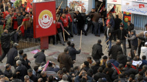 وتابع ” بمجرد وصولي لمقرّ الإتحاد لاحظت وجوها غريبة لم أرها من قبل، ما عدا البعض الذين كانوا نقابيين قدامى قبل أن يلتحقوا بالنهضة ورابطات حماية الثورة ”ويقلبوا الفيستة” ..”. ووصف العباسي المشهد قائلا ” رأيت وجوها واجمة يبدو عليها الغضب والحقد.. ولاحظت تحركات مريبة.. توجهت إلى مكتبي في مقر الإتحاد وبعدها بلحظات بدأت أسمع شعارات مناوئة للاتحاد والمنظمة”.