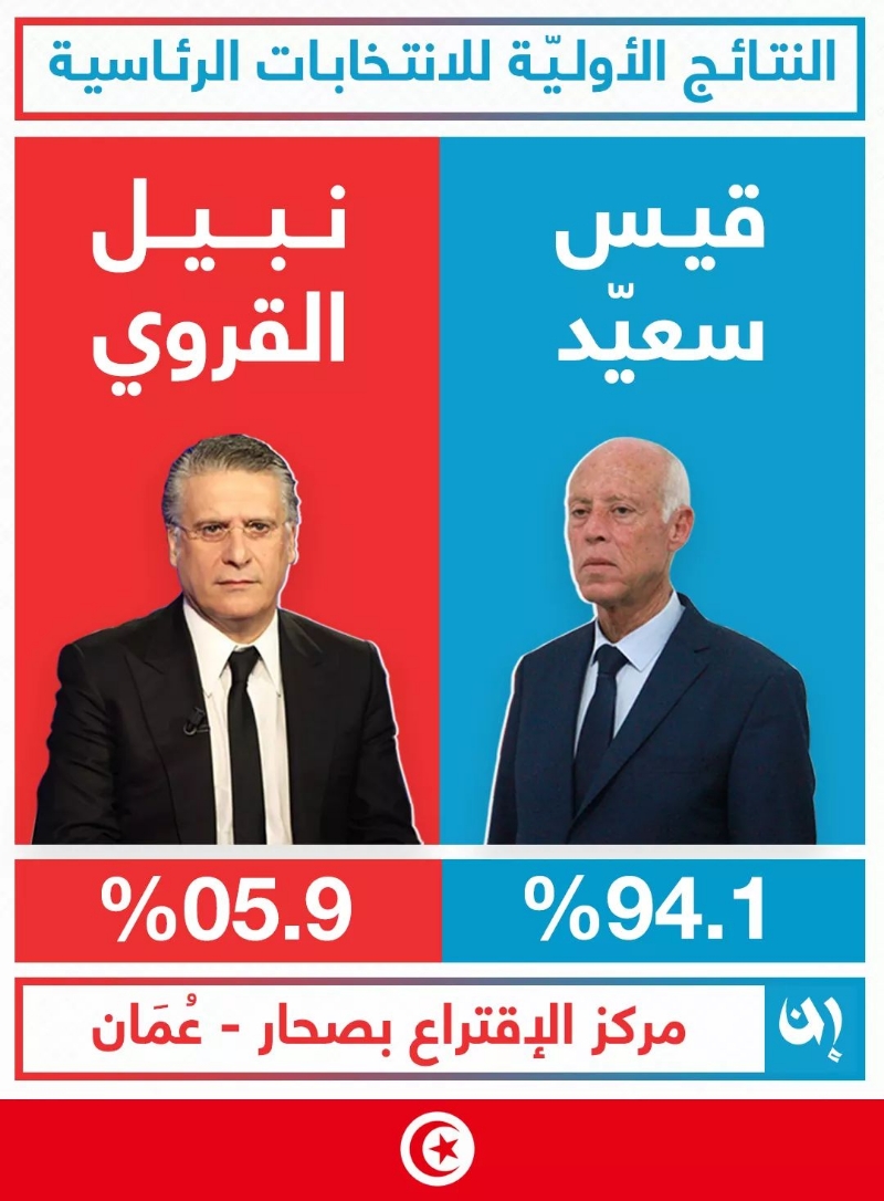 النتائج الأولية للدور الثاني من الانتخابات الرئاسية في مكتب مدينة صحار بسلطنة عُمَان تظهر تقدّم قيس سعيّد..