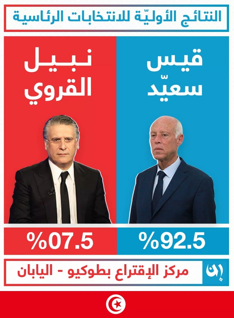 النتائج الأولية للدور الثاني من الانتخابات الرئاسية في مكتب العاصمة اليابانية طوكيو تظهر تقدّم قيس سعيّد.. بقارق شاسع عن نبيل القروي