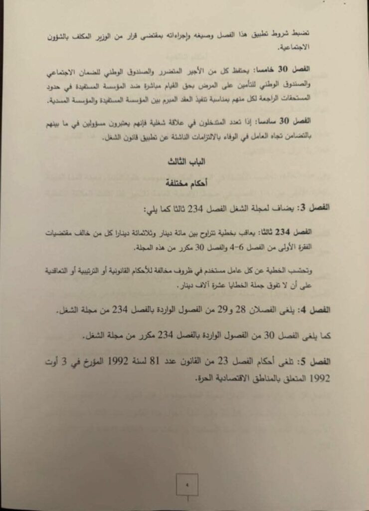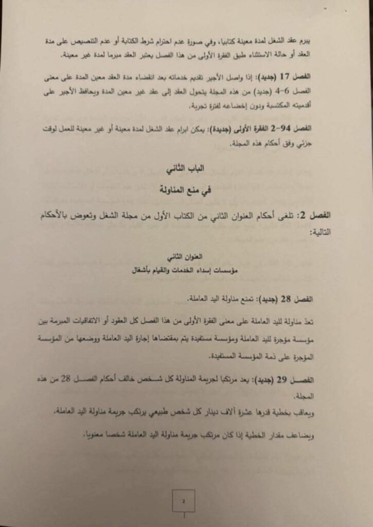 بالصور : بنود قانون الشغل الثوري الذي اصدره الرئيس قيس سعيد (الغاء المناولة و عقود الشغل الوقتية)