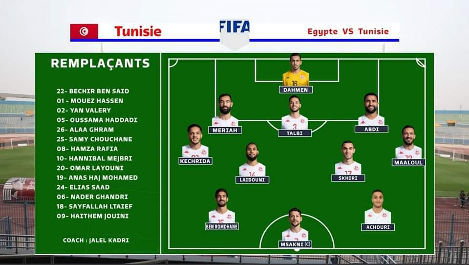 تشكيلة المنتخب التونسي في مواجهة المنتخب المصري