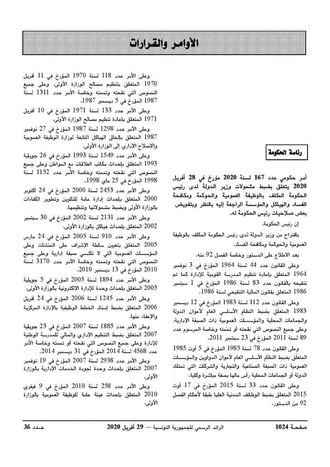 تم “ضبط مشمولات وزير الدولة لدى رئيس الحكومة المكلف بالوظيفة العمومية والحوكمة ومكافحة الفساد والهياكل والمؤسسة الراجعة إليه بالنظر وتفويض بعض صلاحيات رئيس الحكومة له، حسب ما ورد في نص التدوينة نشرت على الصفحة الرسمية للوزارة المذكورة منذ قليل.