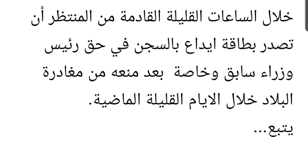 تم منعه من مغادرة البلاد : رئيس وزراء سابق من المنتظر أن تصدر فيه بطاقة ايداع بالسجن في الساعات القادمة. موضوع للمتابعة ..