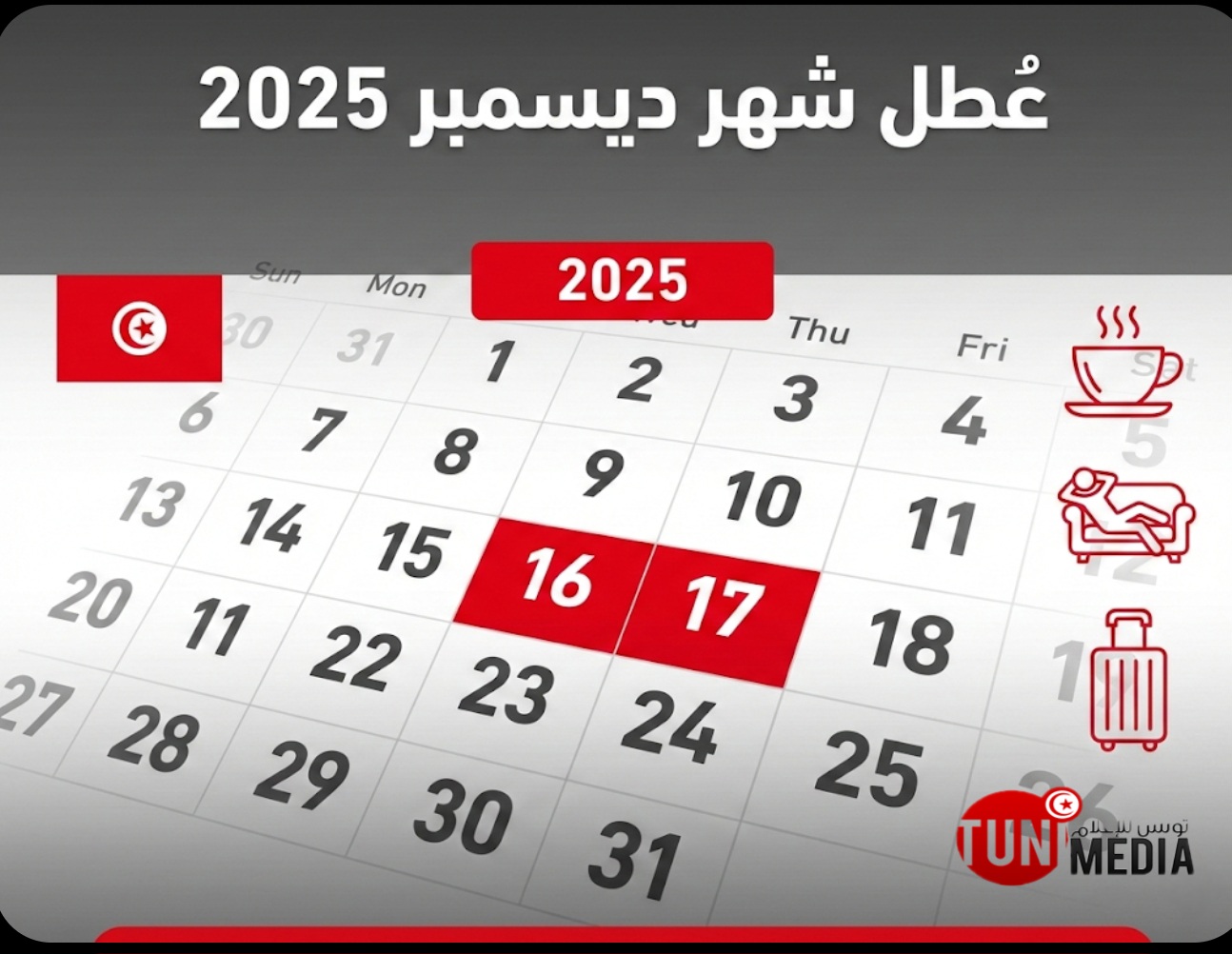 عاجل: هذه هي عُطل شهر ديسمبر 2025 في تونس