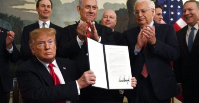 الولايات المتحدة تعترف رسميًا بسيادة إسرائيل على الجولان المحتل