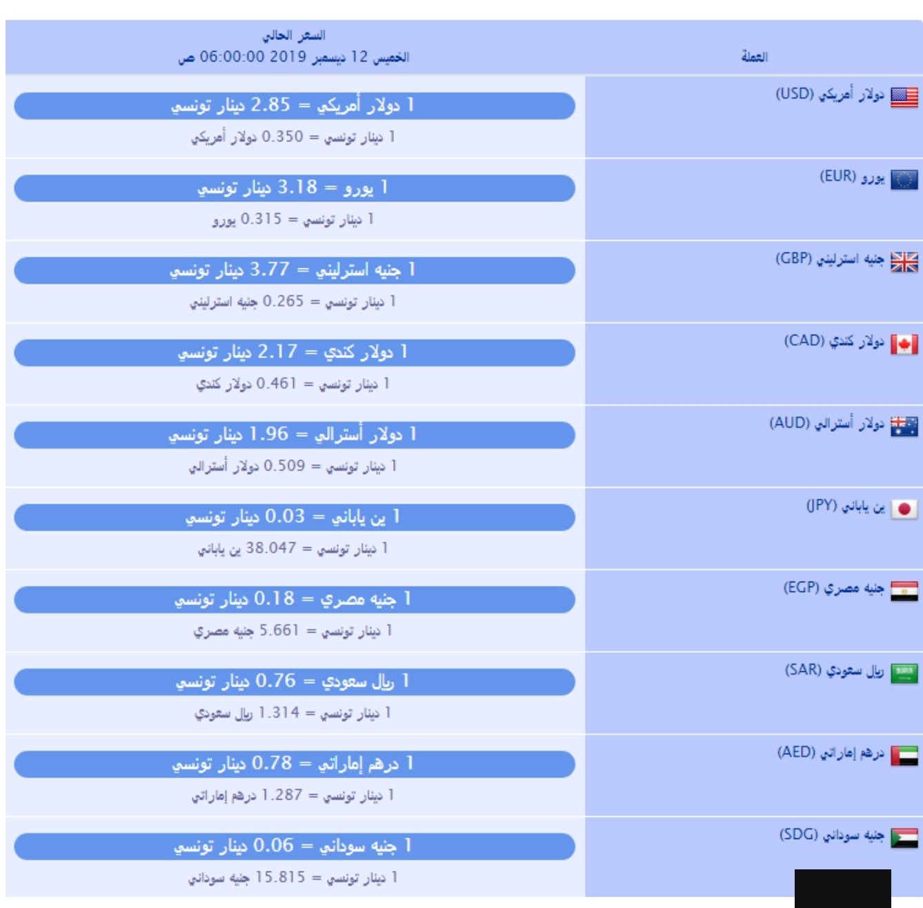 أسعار العملات الأجنبية والعربية بالدينار التونسي لهذا اليوم