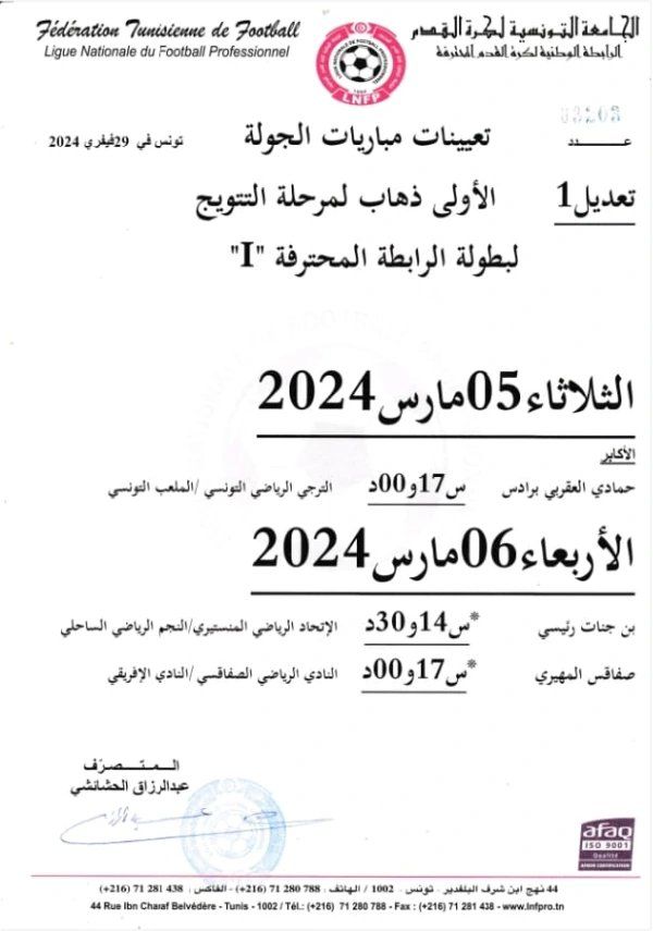 خاص: تغيير توقيت كلاسيكو الصفاقسي والإفريقي