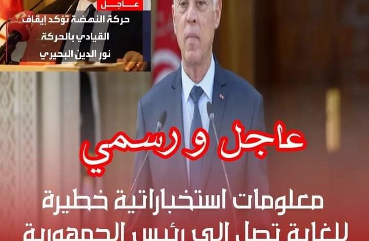 🔴 خطير و رسمي / معلومات استخباراتية خطيرة للغاية تصل الى رئيس الجمهورية قيس سعيد….