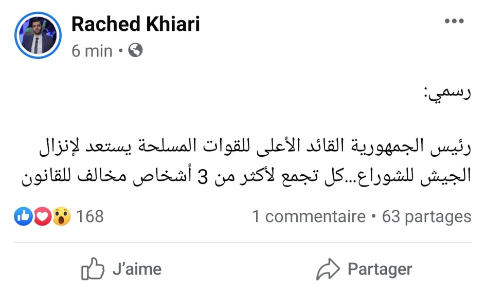 رئيس الجمهورية القائد الأعلى للقوات المسلحة يستعد لإنزال الجيش للشوراع…كل تجمع لأكثر من 3 أشخاص مخالف للقانون