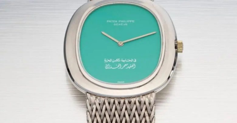 حققت ساعة كان يمتلكها الزعيم الليبي السابق معمر القذافي، وهي من طراز باتيك فيليب وصنعت في عام 1979 بناءً على طلبه، مبلغ 193750 دولارًا في مزاد كريستي للساعات النادرة الذي أقيم في دبي.