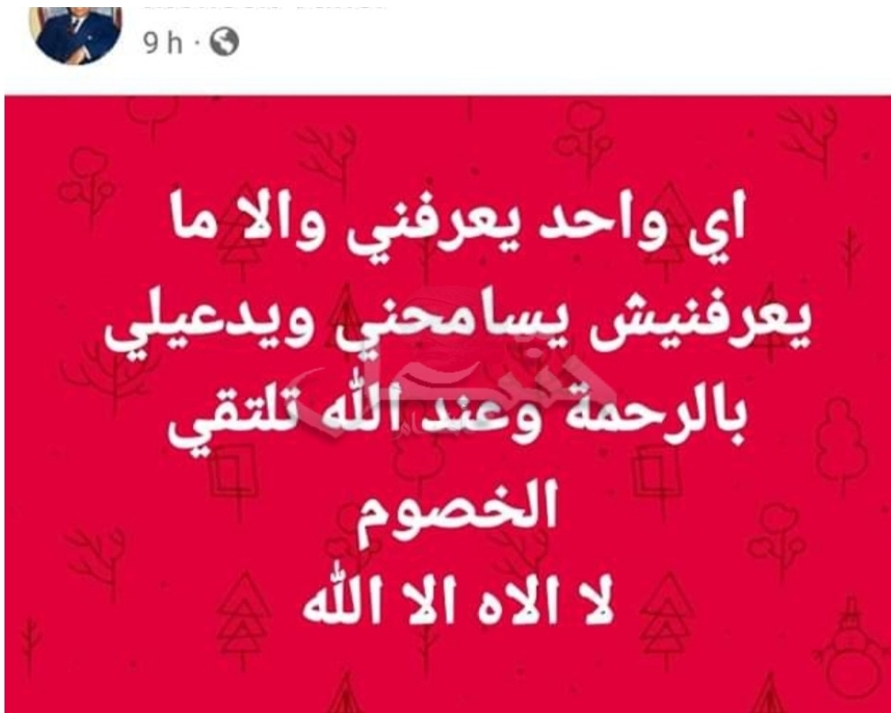هذا وقد نشر تدوينة على صفحته بالفايسبوك دعى فيها اصدقائه الى الترحم عليه .