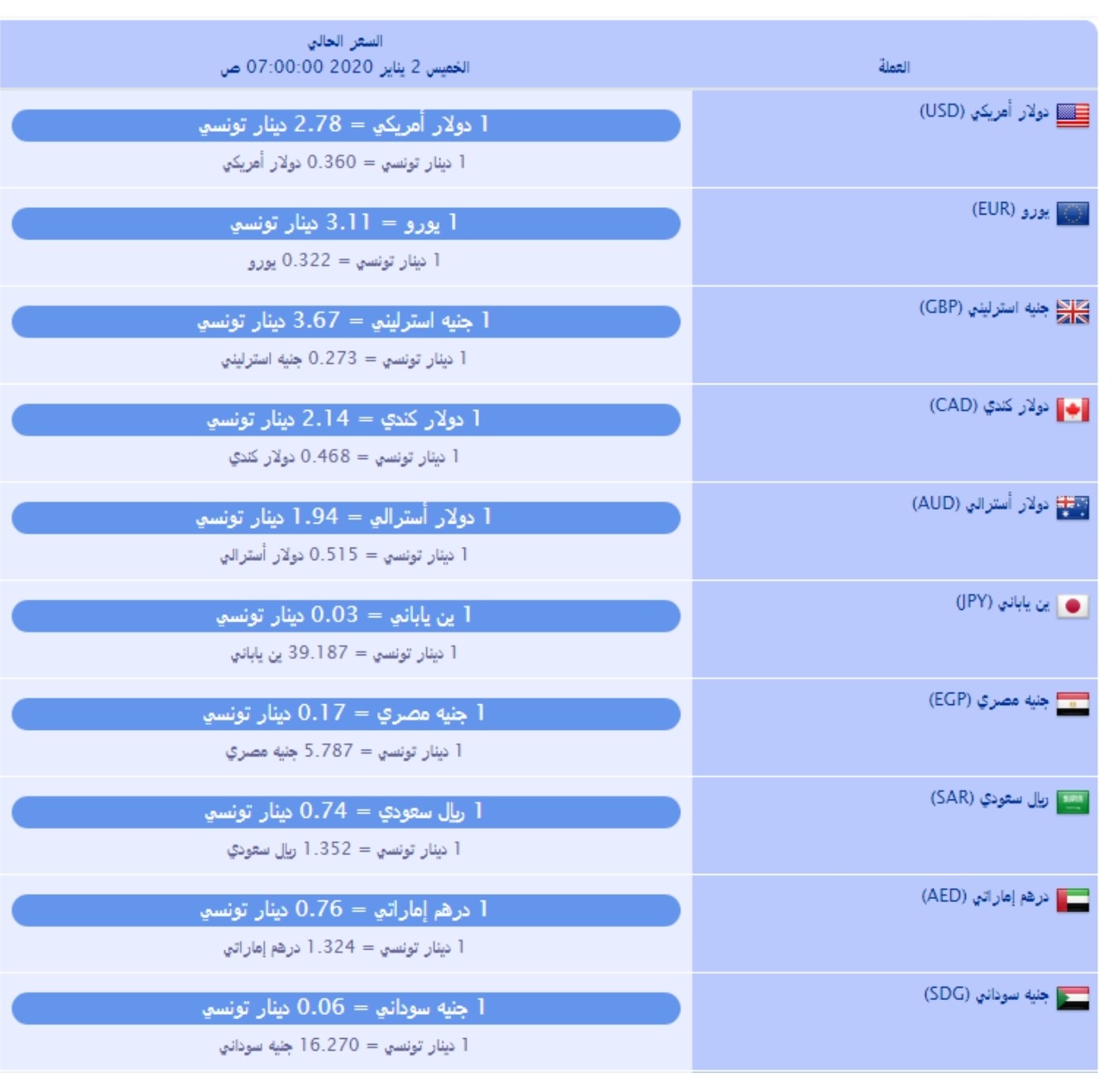 سعر صرف العملات الأجنبية والعربية بالدينار التونسي