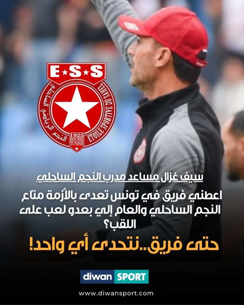 ردا على تصريحات مدرب مساعد الترجي مجدي تراوي بأن المكشخة كانت أفضل من النجم الساحلي فوق الميدان وبلاعبين بعضهم شبان،اكد مدرب مساعد ليتوال سيف غزال حسب رصد موقع ام ام نيوز ” المهم الواقع والنتيجة وسيكون متصدر الترتيب والبطولة موش فائدة في شكون لاعب خير ).