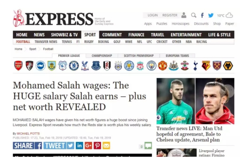 سلطت صحيفة ”ديلي إكسبريس“ البريطانية، الضوء على صافي الدخل السنوي للدولي المصري محمد صلاح، نجم نادي ليفربول الإنجليزي.