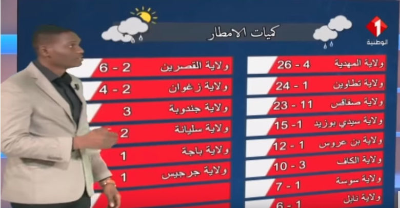 تداولت صفحات التواصل الاجتماعي الفايسبوك صورة لمقدم النشرة الجوية على القناة الوطنية وهو يقدم احوال الطقس في الايام المقبلة.
