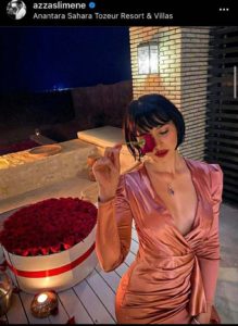 احتفلت الممثلة و العارضة الازياء عزة سليمان بعيد ميلادها وسط اجواء رومانسية مع رجل الاعمال نديم الحباسي طليق الممثلة مرام بن عزيزة بأحد النزل بولاية توزر.