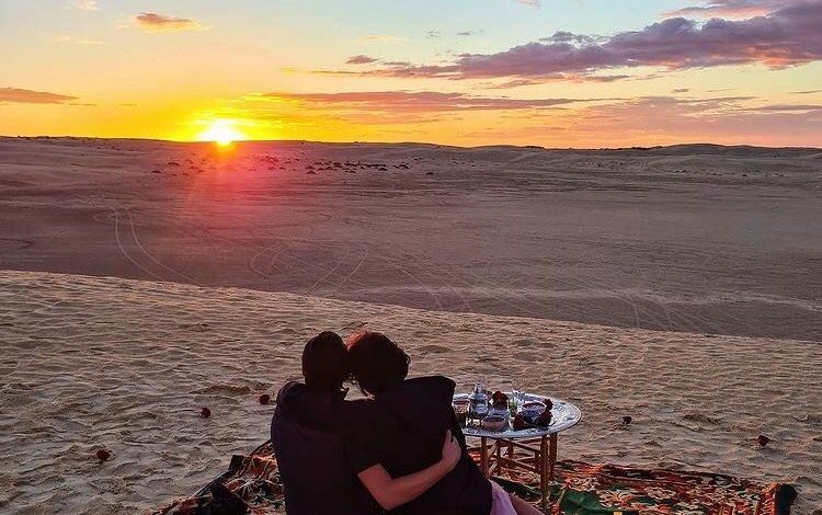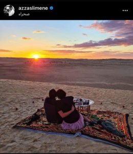 أجواء من الرومنسية و الورود و سهرة تحت اضواء القمر وسط الصحراء تشاركها نديم الحباسي وعزة سليمان التي انطلقت منذ اشهر.
