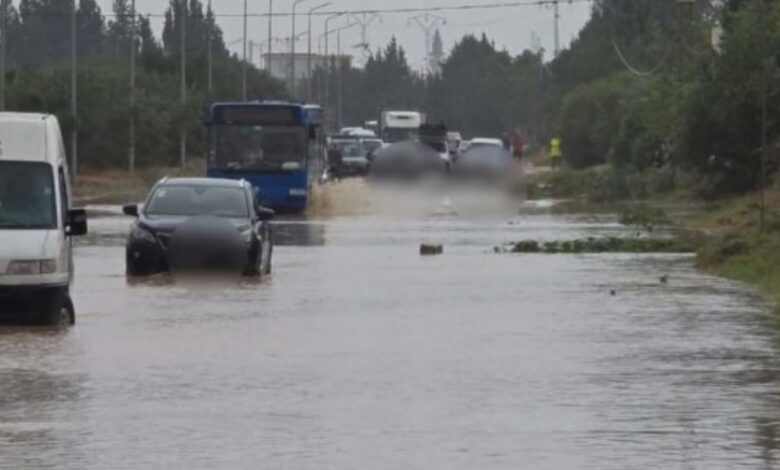 2/ سوسة :الطريق الجهوية رقم 88 مستوى مفترق وادي حمدون والرابطة بين سوسة والمنستير انقطاع حركة المرور بسبب ارتفاع منسوب المياه بوادي حمدون جراء تهاطل الأمطار .