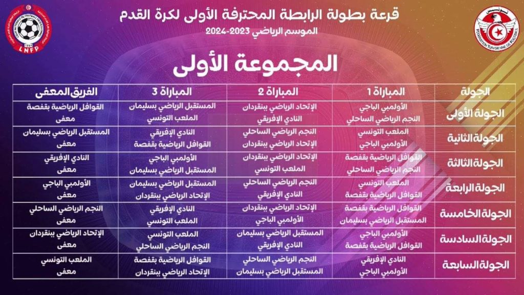 الرابطة المحترفة الأولى التونسية .. موسم 2023-2024: رزنامة المرحلة الأولى للمجموعتين