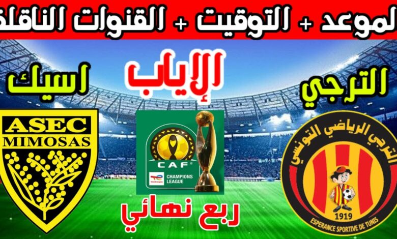 يلتقي الترجي الرياضي التونسي مساء اليوم على الساعة الثامنة بتوقيت تونس نادي اساك ميموزا الايفواري وذلك في إياب ربع نهائي رابطة ابطال افريقيا بـ ملعب فيليكس هوفويت بواني بمدينة أبيدجان.