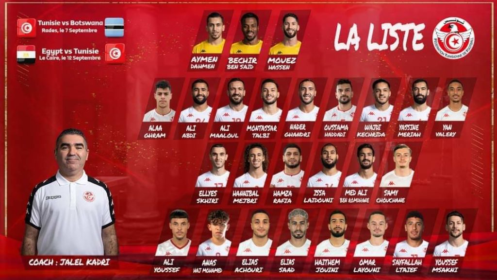 قائمة لاعبي المنتخب التونسي لكرة القدم لمواحهتي بوتسوانا ومصر