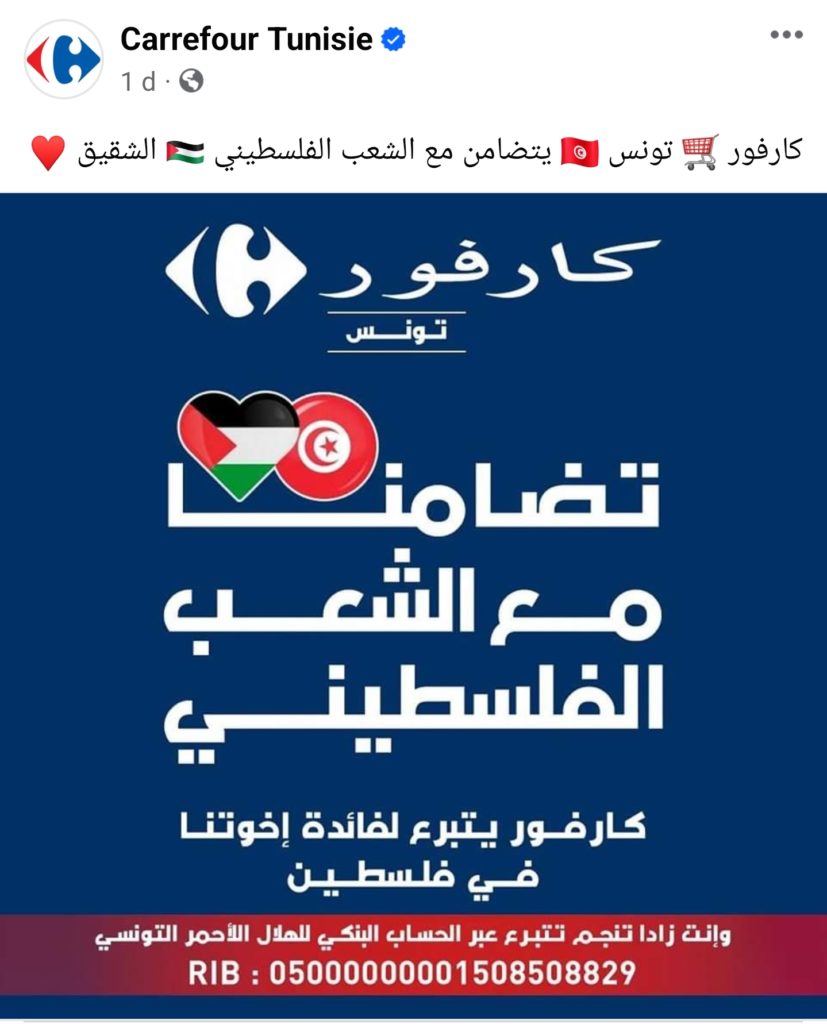 كارفور تونس تعلن عن تبرّعها لفائدة أهالي غzة، وتصدر بيانا للرأي العام