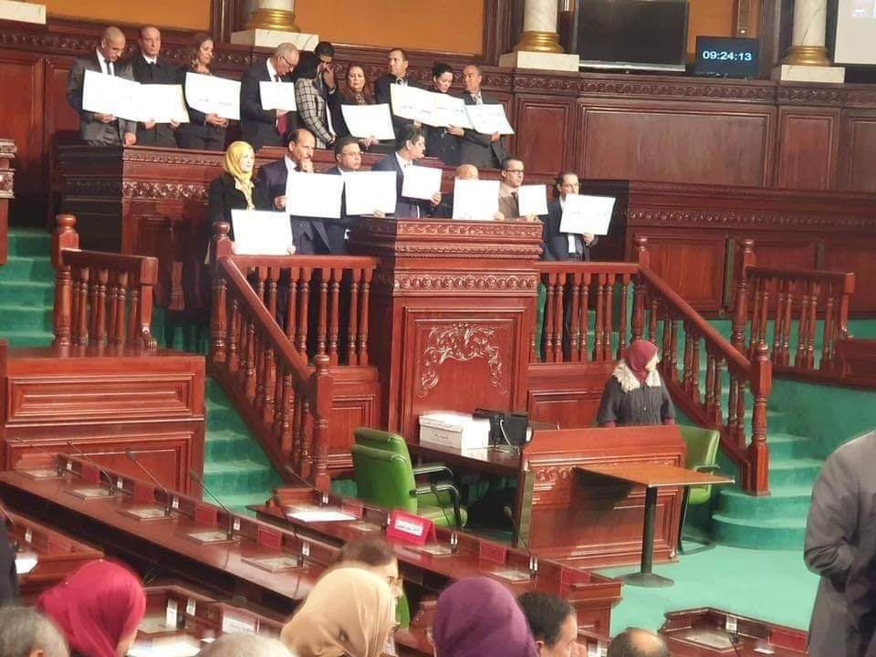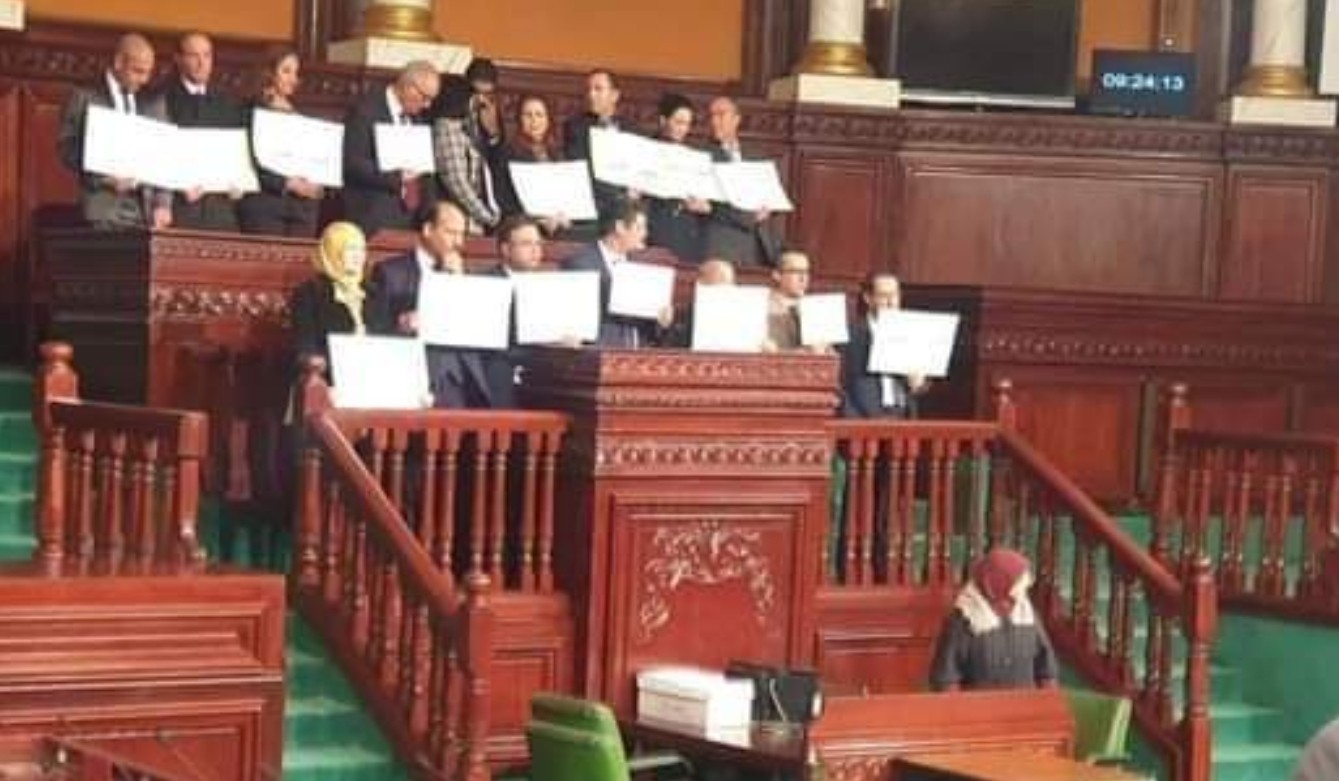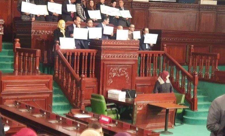 كتلة الحزب الدستوري تعتصم بالفضاء المخصص لرئاسة البرلمان