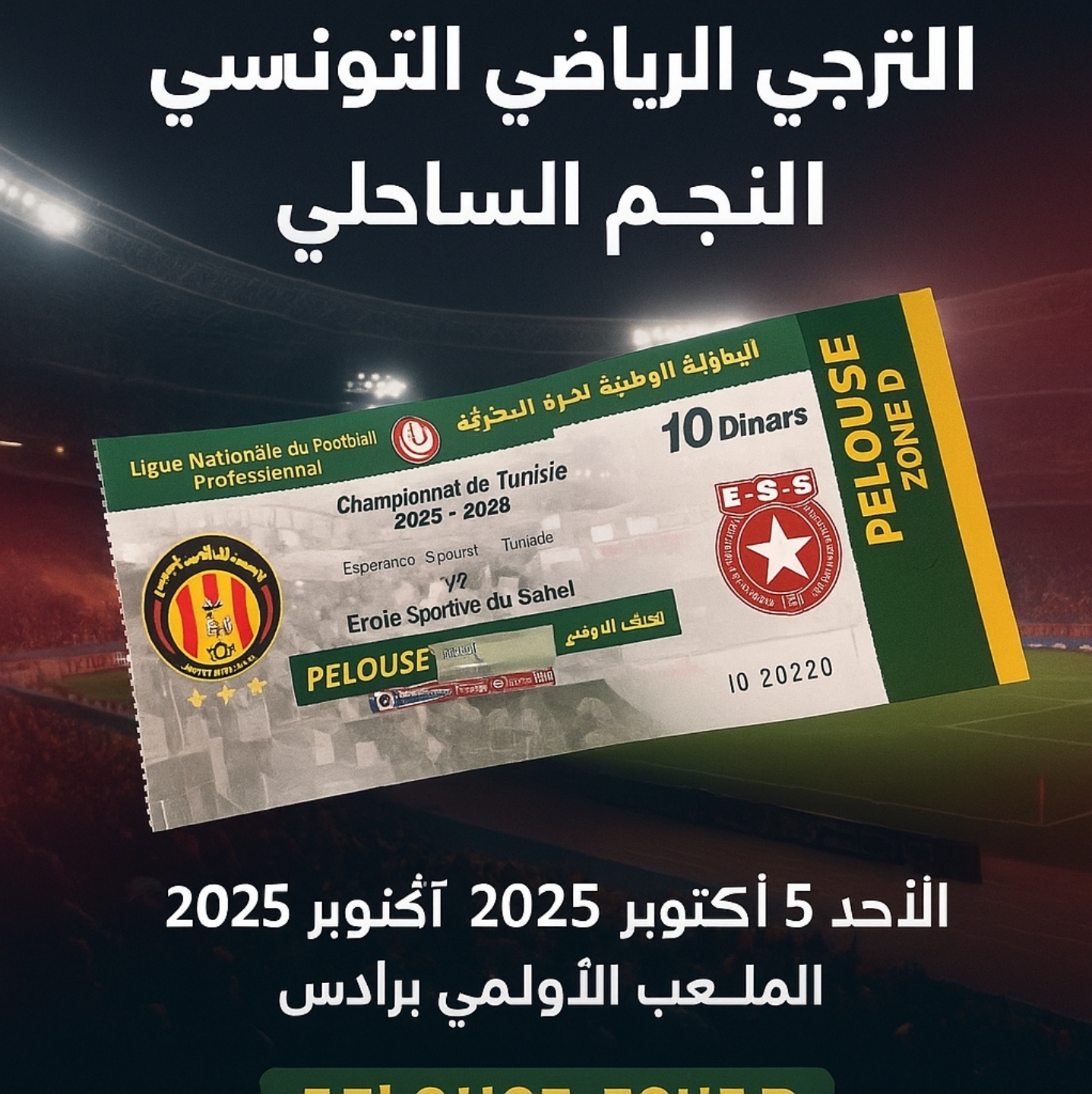 يستضيف الملعب الأولمبي برادس قمة كروية منتظرة تجمع بين الترجي الرياضي التونسي والنجم الرياضي الساحلي في واحدة من أهم مواجهات مرحلة الذهاب.