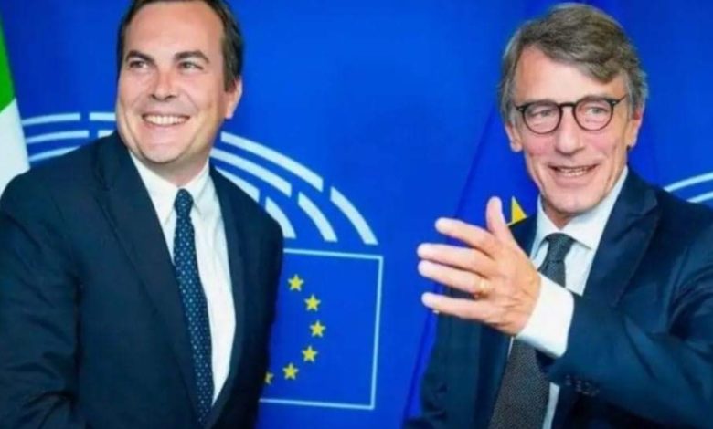وزير الشؤون الأوروبية بالحكومة الإيطالية فينتشينسو أميندولا في لقاء مع رئيس البرلمان الأوروبي ديفيد ساسولي