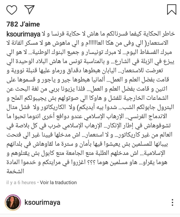 مايا القصوري : أغزرو لرواحكم في المرايا …فرنسا خاطيها ، الإرهاب الإسلامي ضرب في كل بلاصة في العالم